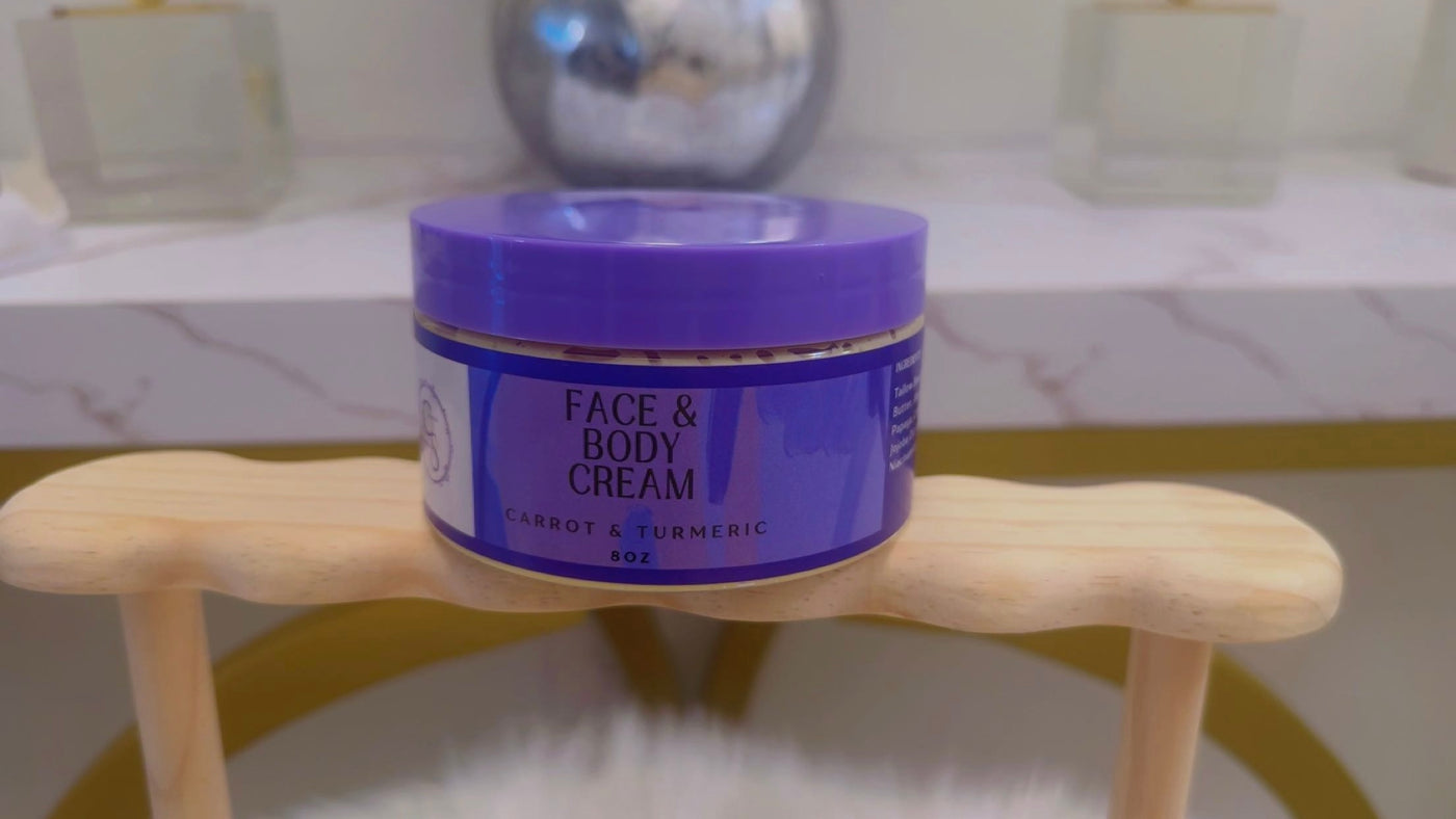 Unveil radiant, even-toned skin with our luxurious Carrot & Turmeric Kojic Face & Body Cream. Crafted with a rich blend of kojic acid, carrot extract, and turmeric, this whipped butter targets dark spots, blemishes, and uneven skin tone while deeply moisturizing and nourishing your skin. Perfect for daily use on both face and body, this buttery formula melts into your skin, leaving a soft, healthy glow without a greasy finish.